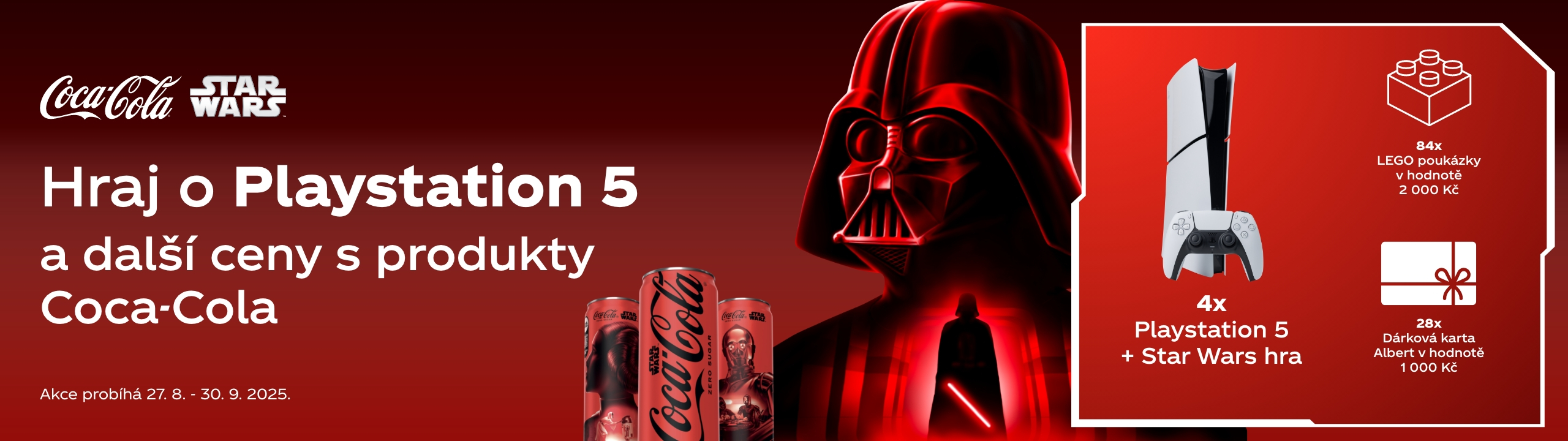 Hrajte o 4x Playstation 5 a hru Star Wars Jedi: Survivor, 84 poukazů Lego v hodnotě 2 000 Kč a 28 dárkových karet Albert v hodnotě 1 000 Kč.